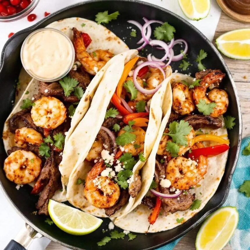 Juicy steak, sizzling shrimp, and bold spices wrapped in warm tortillas—these surf…