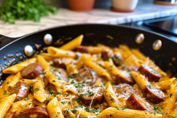 A quick and hearty one-pan meal loaded with Italian sausage, tender penne…