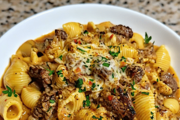 Tender seared steak meets creamy Alfredo tossed with fettuccine and crumbled gorgonzola…