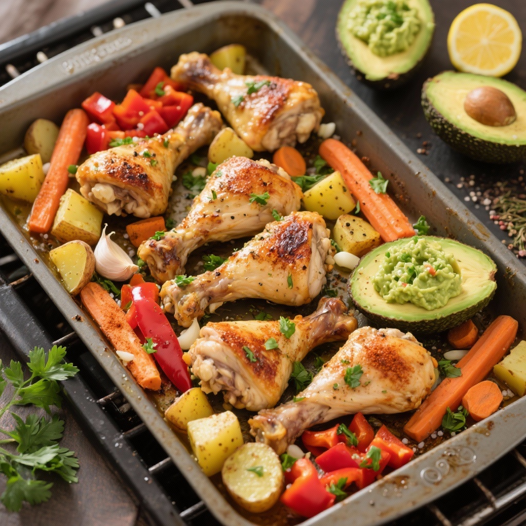 This Ultimate One-Pan Roasted Chicken Drumsticks with Veggies & Guacamole is a complete meal made for busy weeknights. Juicy, seasoned chicken drumsticks roast alongside tender vegetables, creating a flavorful, hands-off dinner with minimal cleanup. The fresh homemade guacamole adds a creamy, bright contrast that elevates the dish into something both comforting and vibrant. Simple to make, nourishing, and customizable, this recipe is ideal for families and meal-prep lovers alike.