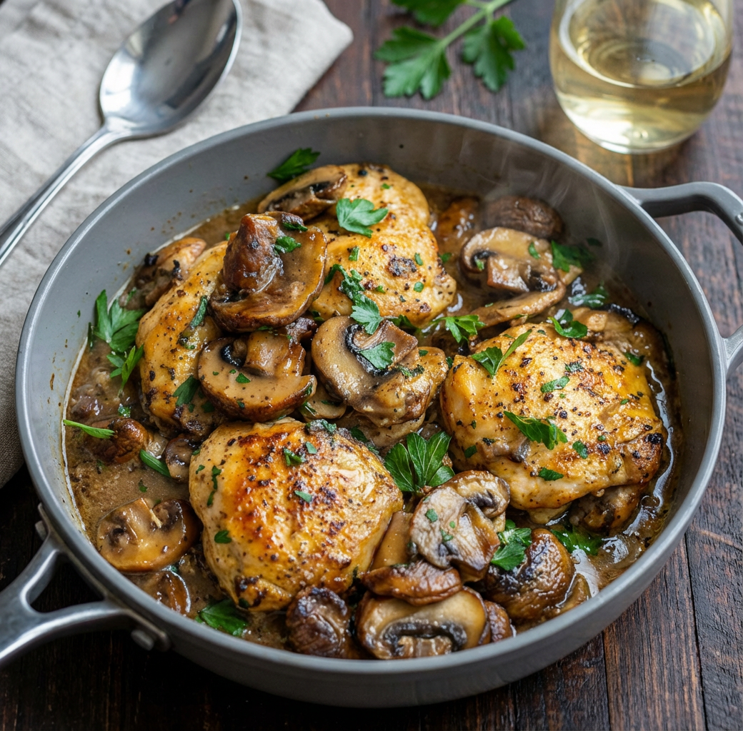 This quick and flavorful skillet mushroom chicken is the perfect weeknight dinner. Tender chicken cutlets are seared until golden, then finished in a savory mushroom and garlic pan sauce. The combination of herbs, green onions, and chicken broth creates a rich, comforting flavor without any heavy ingredients. Ready in just 20 minutes, it’s simple, wholesome, and incredibly satisfying.