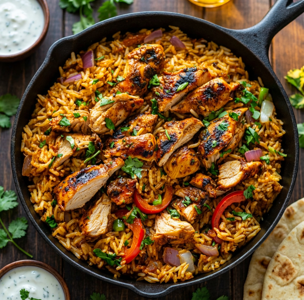 This One Pot Shawarma Chicken and Rice is an easy, deeply flavorful dish inspired by classic Middle Eastern shawarma. Tender chicken thighs are coated in warm spices, seared until golden, and cooked together with aromatic rice that absorbs every bit of flavor from the chicken and spices. Everything cooks in one pot, making this recipe perfect for busy weeknights, meal prep, or a comforting family dinner. The result is a complete meal with minimal cleanup and maximum taste.