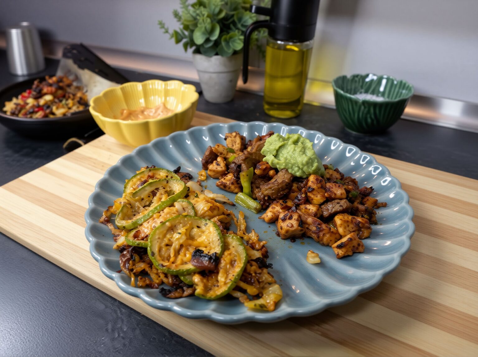 This dish is a hearty, flavorful combination of juicy pan-seared chicken and beef bites paired with smoky roasted vegetables. It’s simple, rustic, and incredibly satisfying—perfect for a weeknight dinner but bold enough for guests. The spices add warmth and depth, while the roasted squash and cabbage bring a slightly sweet, caramelized balance to the savory meat.