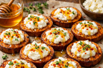 Roasted Sweet Potato Rounds with Whipped Feta and Golden Honey Drizzle
